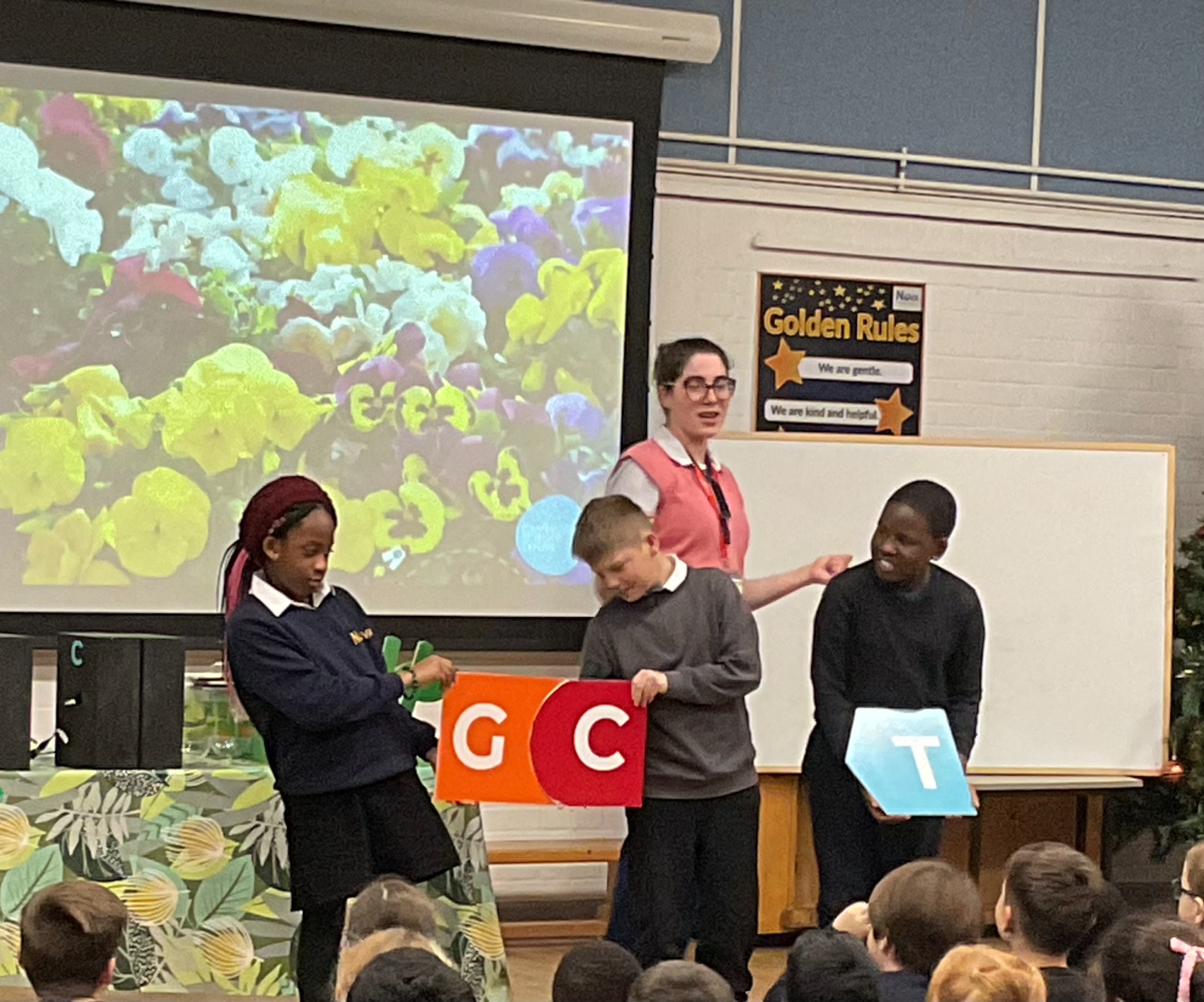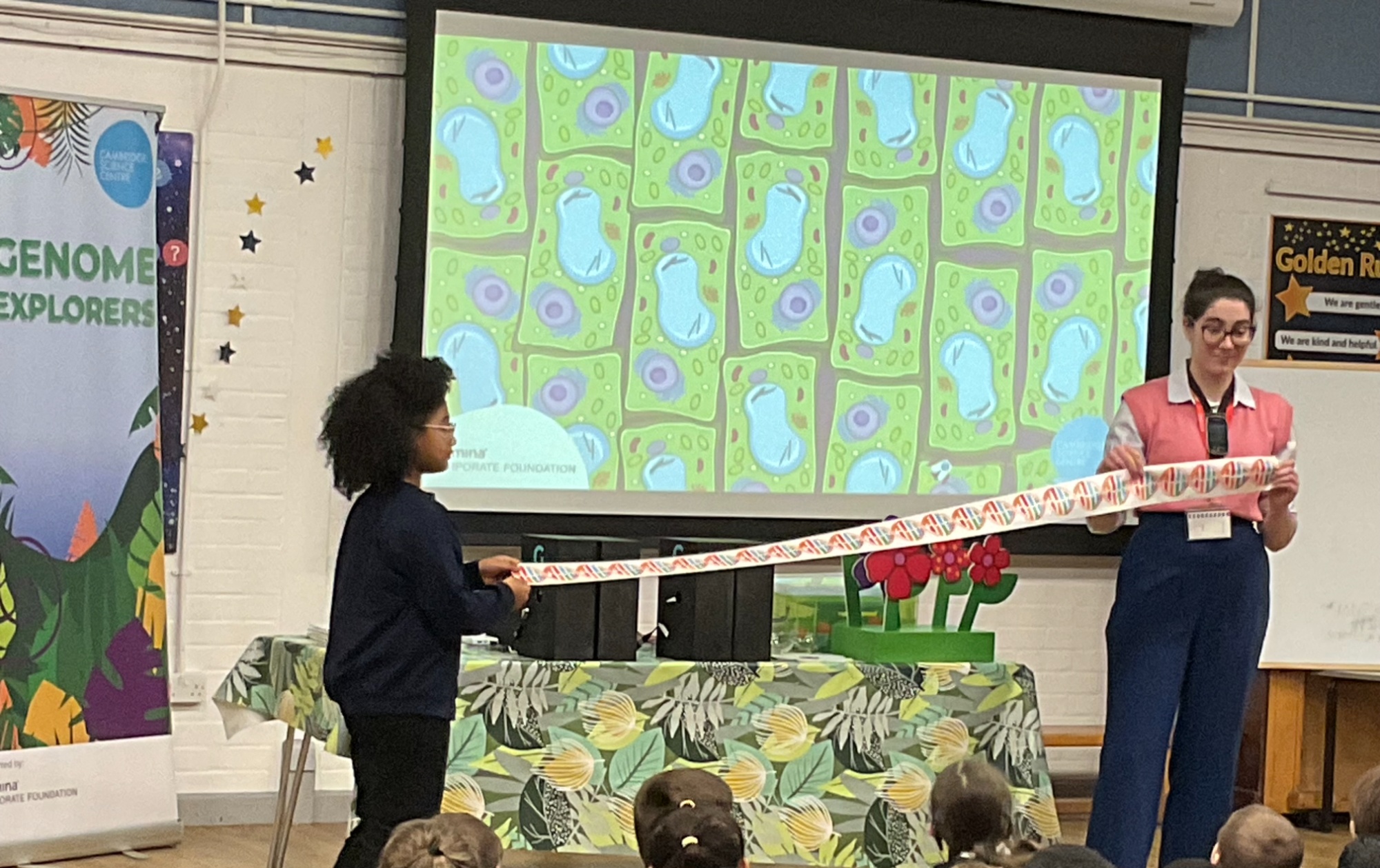 On Tuesday, we enjoyed a visit from the Cambridge Science Centre who came in to deliver their exciting educational workshop on genomes. Years 4-6 were able to ask questions and interact with the workshop which gave an insight into how genetic sequencing occurs and how organisms can have different characteristics due to differences in their genome sequencing. Years 5 and 6 then had the opportunity to become genome explorers and carry out a practical activity to demonstrate the idea of extracting DNA from strawberries. A fun morning was had by all involved and lots of scientific skills were developed.